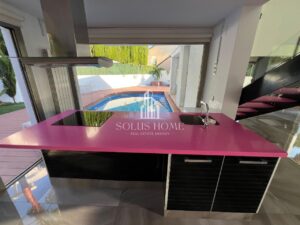 ✔ En el área exterior, se puede disfrutar de la piscina privada, paellero, ducha, tarima y césped artificial. Además, cuenta con una zona solárium estratégicamente ubicada, ideal para tomar el sol en cualquier época del año.