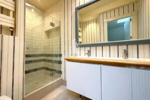 ✔ La zona de descanso está en la segunda planta y cuenta con 5 dormitorios con los cuartos de baño en suite, los baños y vestidores con claraboyas en el techo que les aportan luz natural, y un despacho que podría ser un sexto dormitorio.