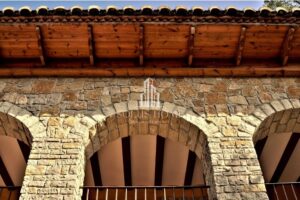 ✔ Techos de revoltón con vigas revestidas en madera en estancias principales y porches.